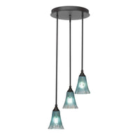 (2143-DG-725) Empire 3 Light Cluster Pendalier In Dark Granite Finish With 5.5" Teal Crystal Glass. Rated for: Dry location. Light Bulb Data: 3 Medium 100 Watt. Bulb Included: No.