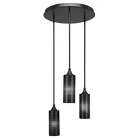 2183-DG-4099 Empire 3 Light Cluster Pendalier Shown In Dark Granite Finish With 4" Black Matrix Glass. Rated for: Dry location. Light Bulb Data: 3 Medium 100 watt. Bulb included: No.