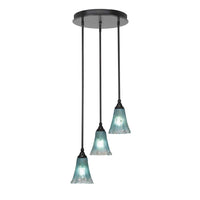 (2143-ES-725) Empire 3 Light Cluster Pendalier In Espresso Finish With 5.5" Teal Crystal Glass. Rated for: Dry location. Light Bulb Data: 3 Medium 100 Watt. Bulb Included: No.