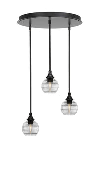 (2183-ES-5110) Empire Empire 3 Light Cluster Pendalier In Espresso Finish With 6" Clear Ribbed Glass. Rated for: Dry Location. Light Bulb Data: 3 Medium 100 watt. Bulb Included: No.