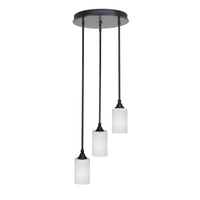 (2143-MB-4061) Empire 3 Light Cluster Pendalier In Matte Black Finish With 4" White Matrix Glass. Rated for: Dry location. Light Bulb Data: 3 Medium 100 Watt. Bulb Included: No.