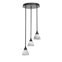 (2143-MB-4769) Empire 3 Light Cluster Pendalier In Matte Black Finish With 6.25" Onyx Swirl Glass. Rated for: Dry location. Light Bulb Data: 3 Medium 100 Watt. Bulb Included: No.