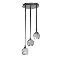 (2143-MB-4819) Empire 3 Light Cluster Pendalier In Matte Black Finish With 6" Onyx Swirl Glass. Rated for: Dry location. Light Bulb Data: 3 Medium 100 Watt. Bulb Included: No.
