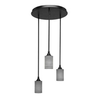 2183-MB-4062 Empire 3 Light Cluster Pendalier Shown In Matte Black Finish With 4" Gray Matrix Glass. Rated for: Dry location. Light Bulb Data: 3 Medium 100 watt. Bulb included: No.