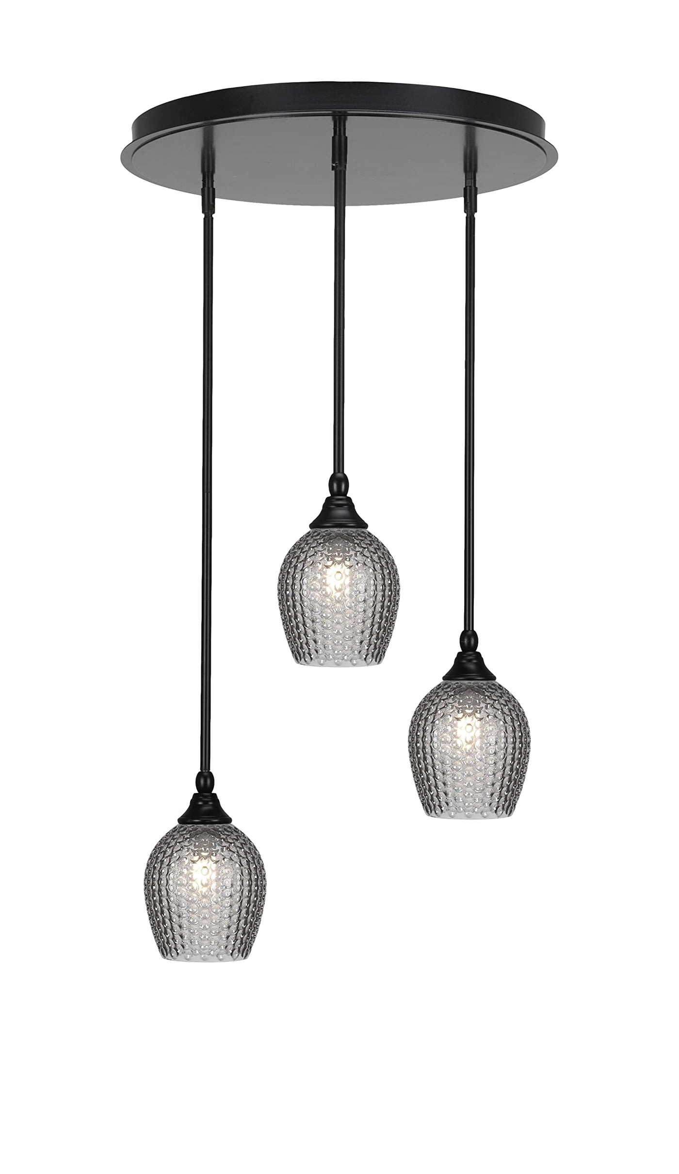 (2183-MB-4902) Empire Empire 3 Light Cluster Pendalier In Matte Black Finish With 7.5" Smoke Textured Glass. Rated for: Dry Location. Light Bulb Data: 3 Medium 100 watt. Bulb Included: No.