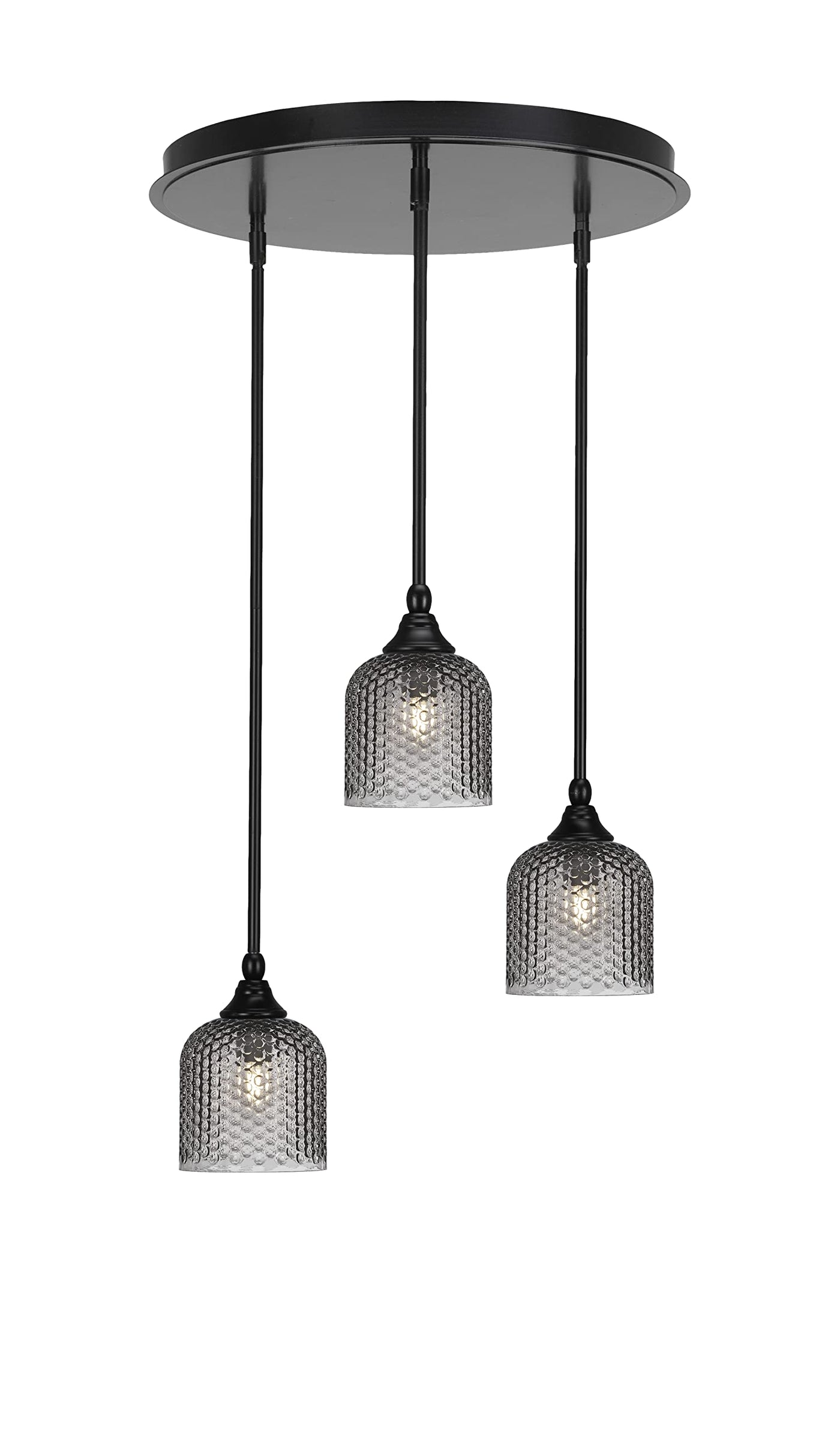 (2183-MB-4912) Empire Empire 3 Light Cluster Pendalier In Matte Black Finish With 7" Smoke Textured Glass. Rated for: Dry Location. Light Bulb Data: 3 Medium 100 watt. Bulb Included: No.