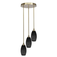 (2143-NAB-4049) Empire 3 Light Cluster Pendalier In New Age Brass Finish With 5.5" Black Matrix Glass. Rated for: Dry location. Light Bulb Data: 3 Medium 100 Watt. Bulb Included: No.