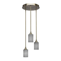 2143-NAB-4062 Empire 3 Light Cluster Pendalier Shown In New Age Brass Finish With 4" Gray Matrix Glass. Rated for: Dry location. Light Bulb Data: 3 Medium 100 watt. Bulb included: No.