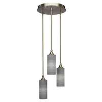 2143-NAB-4092 Empire 3 Light Cluster Pendalier Shown In New Age Brass Finish With 4" Gray Matrix Glass. Rated for: Dry location. Light Bulb Data: 3 Medium 100 watt. Bulb included: No.