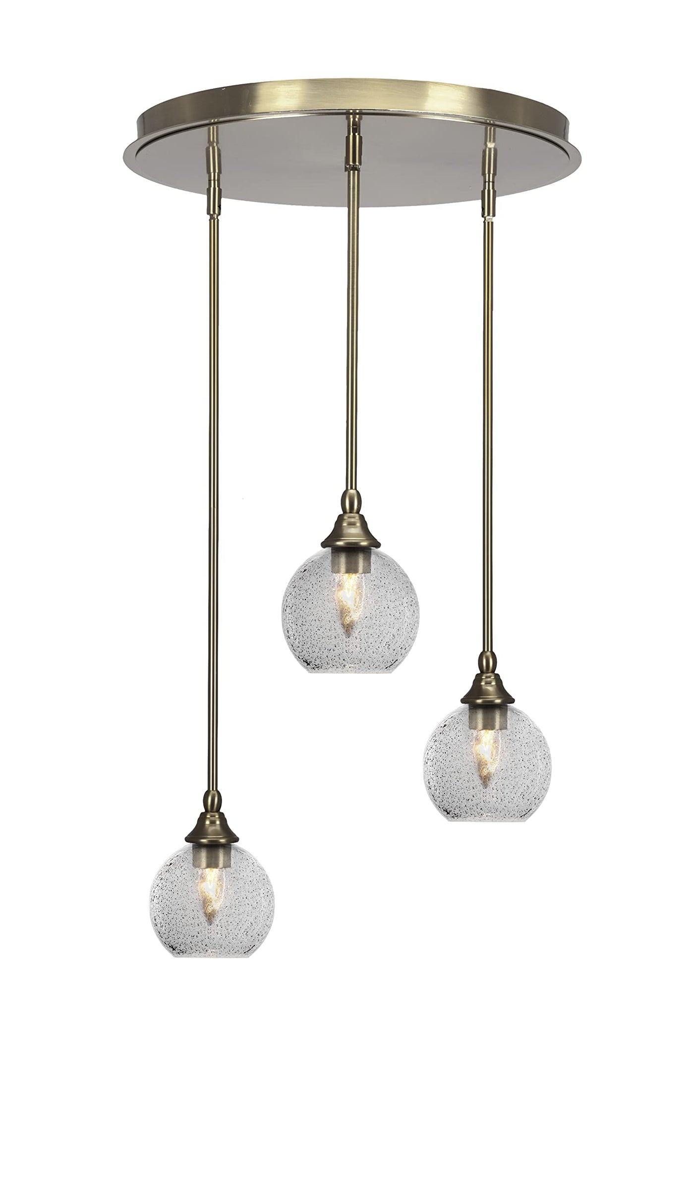 (2183-NAB-4102) Empire Empire 3 Light Cluster Pendalier In New Age Brass Finish With 5.75" Smoke Bubble Glass. Rated for: Dry Location. Light Bulb Data: 3 Medium 100 watt. Bulb Included: No.