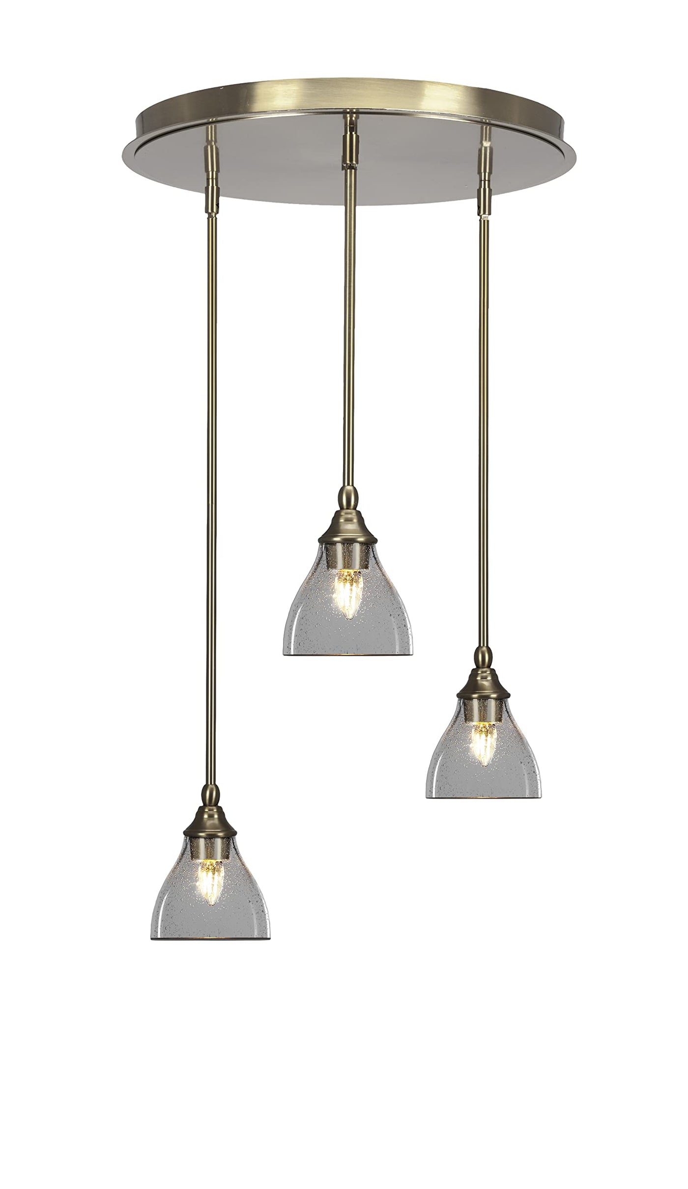 (2183-NAB-4760) Empire Empire 3 Light Cluster Pendalier In New Age Brass Finish With 6.25" Clear Bubble Glass. Rated for: Dry Location. Light Bulb Data: 3 Medium 100 watt. Bulb Included: No.