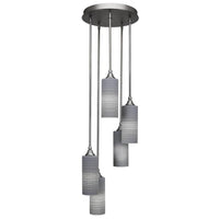 2145-BN-4092 Empire 5 Light Cluster Pendalier Shown In Brushed Nickel Finish With 4" Gray Matrix Glass. Rated for: Dry location. Light Bulb Data: 5 Medium 100 watt. Bulb included: No.
