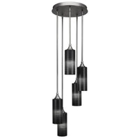 2145-BN-4099 Empire 5 Light Cluster Pendalier Shown In Brushed Nickel Finish With 4" Black Matrix Glass. Rated for: Dry location. Light Bulb Data: 5 Medium 100 watt. Bulb included: No.