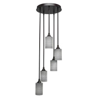 2145-DG-4062 Empire 5 Light Cluster Pendalier Shown In Dark Granite Finish With 4" Gray Matrix Glass. Rated for: Dry location. Light Bulb Data: 5 Medium 100 watt. Bulb included: No.