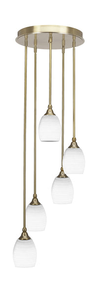 2145-NAB-4021 Empire 5 Light Cluster Pendalier In New Age Brass Finish With 5" White Matrix Glass. Rated for: Dry Location. Light Bulb Data: 5 E26 100 watt. Bulb Included: No.