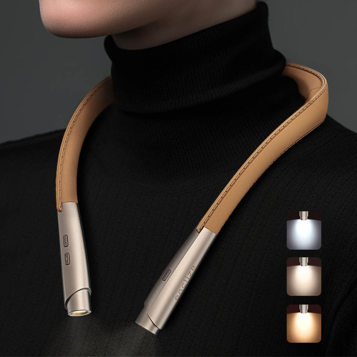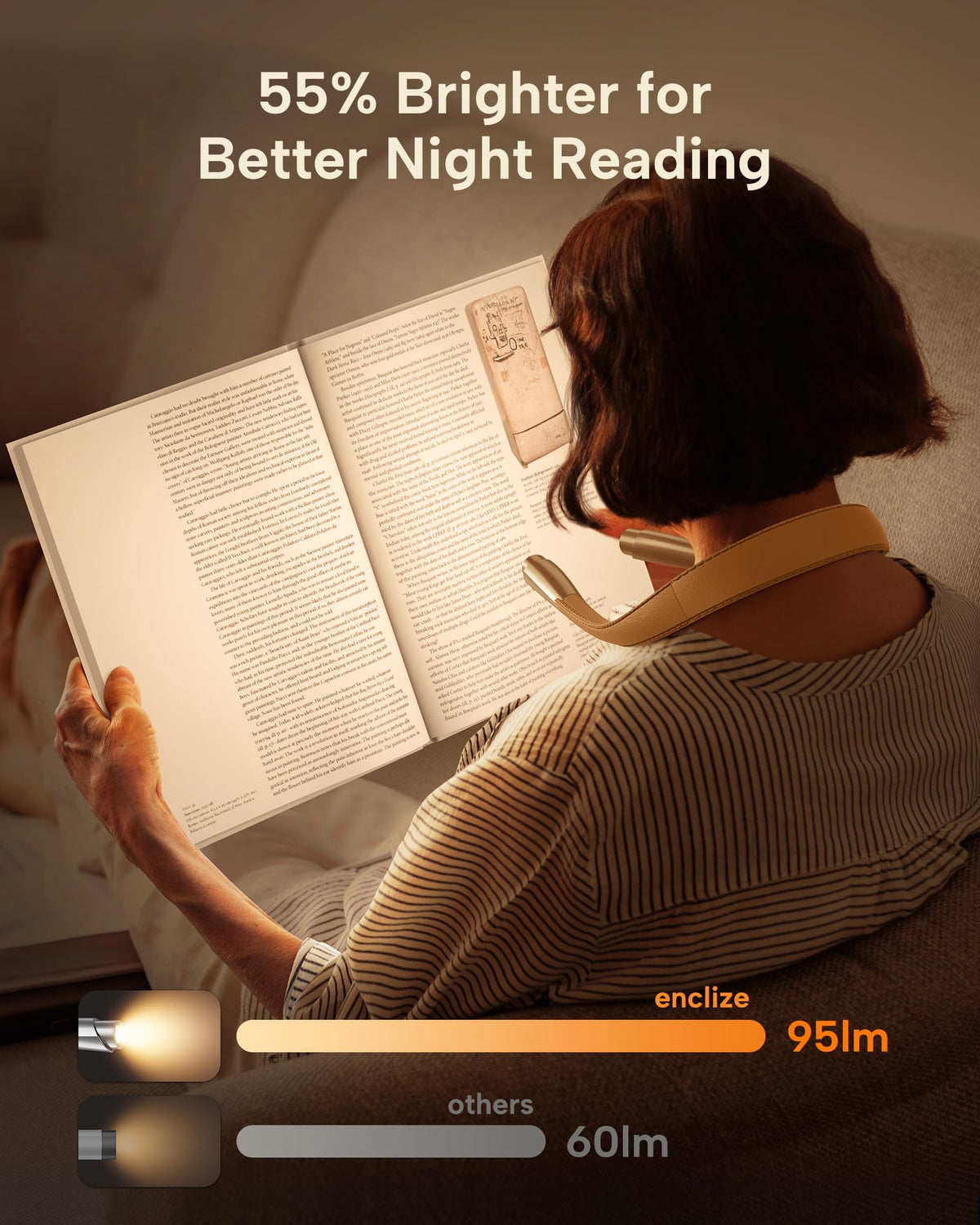 Enclize Rechargeable Led Neck Reading Light, Book Lights For Reading In Bed,Stepless Dimming Book Light, Flexible Soft Arms,Leather Like, Long Lasting. Perfect For Knitting, Crafts, And Readers