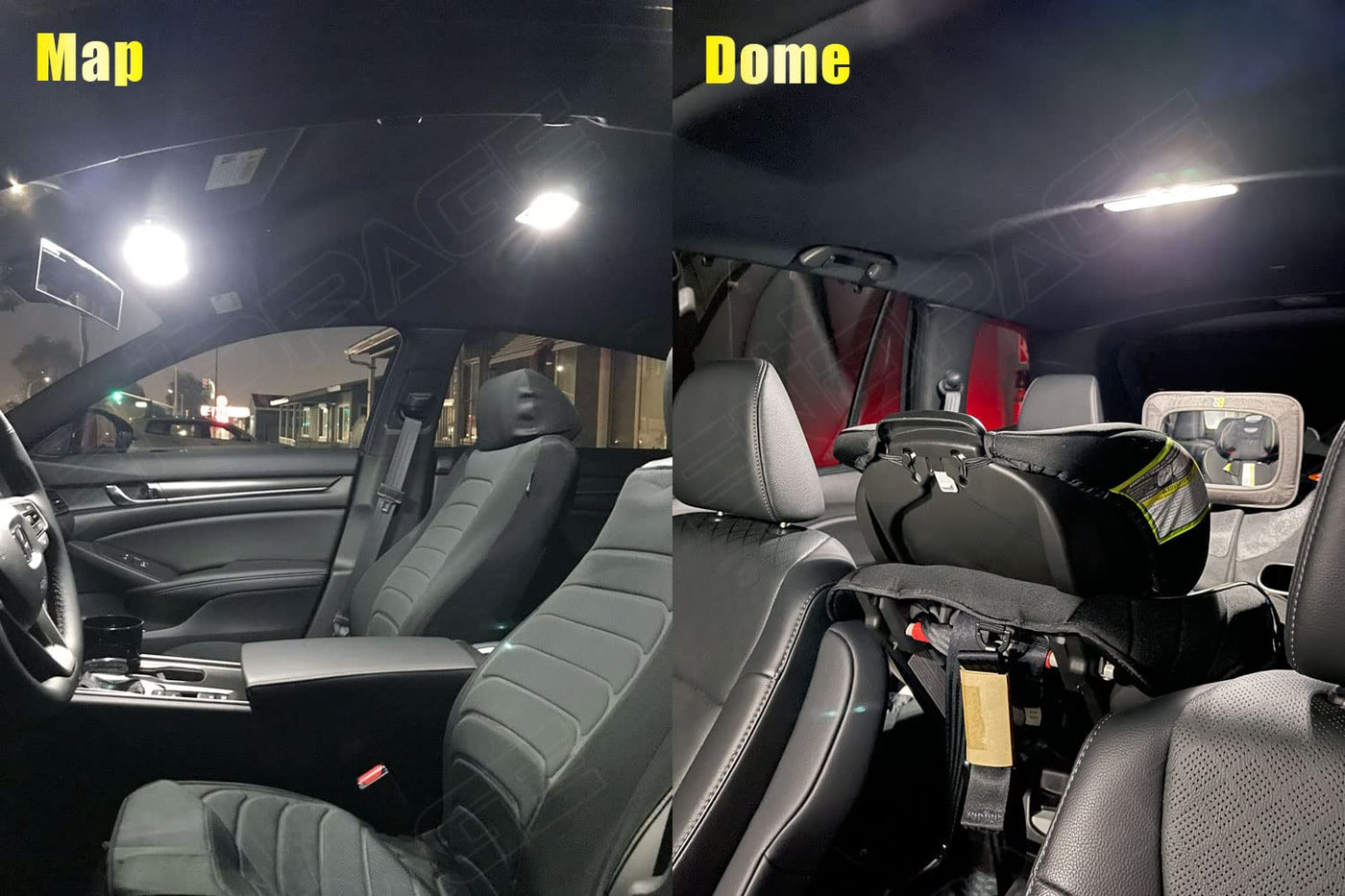 The Accord interior LED lights kit comes with everything needed: 12pcs LED Light bulbs(Map Lights, Dome Lights, Vanity Mirror Lights, Door Lights, Trunk Lights, License Plate Lights.) 1pcs Non-Marring Installation Tool 1pcs Placement Diagram that tells what bulb goes where