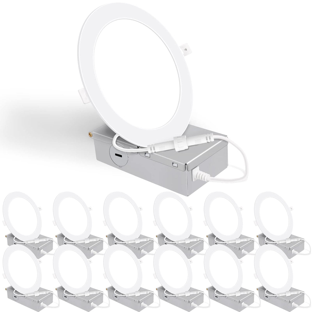Energetic 12 Pack 6 Inch Ultra-Thin Led Recessed Ceiling Light With Junction Box, 5000K Daylight, 12W 110W Eqv, Dimmable Canless