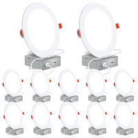Energetic 12 Pack 6 Inch Ultra-Thin Led Recessed Lighting With Junction Box, 900Lm High Brightness, 3000K Warm White Canless Waf
