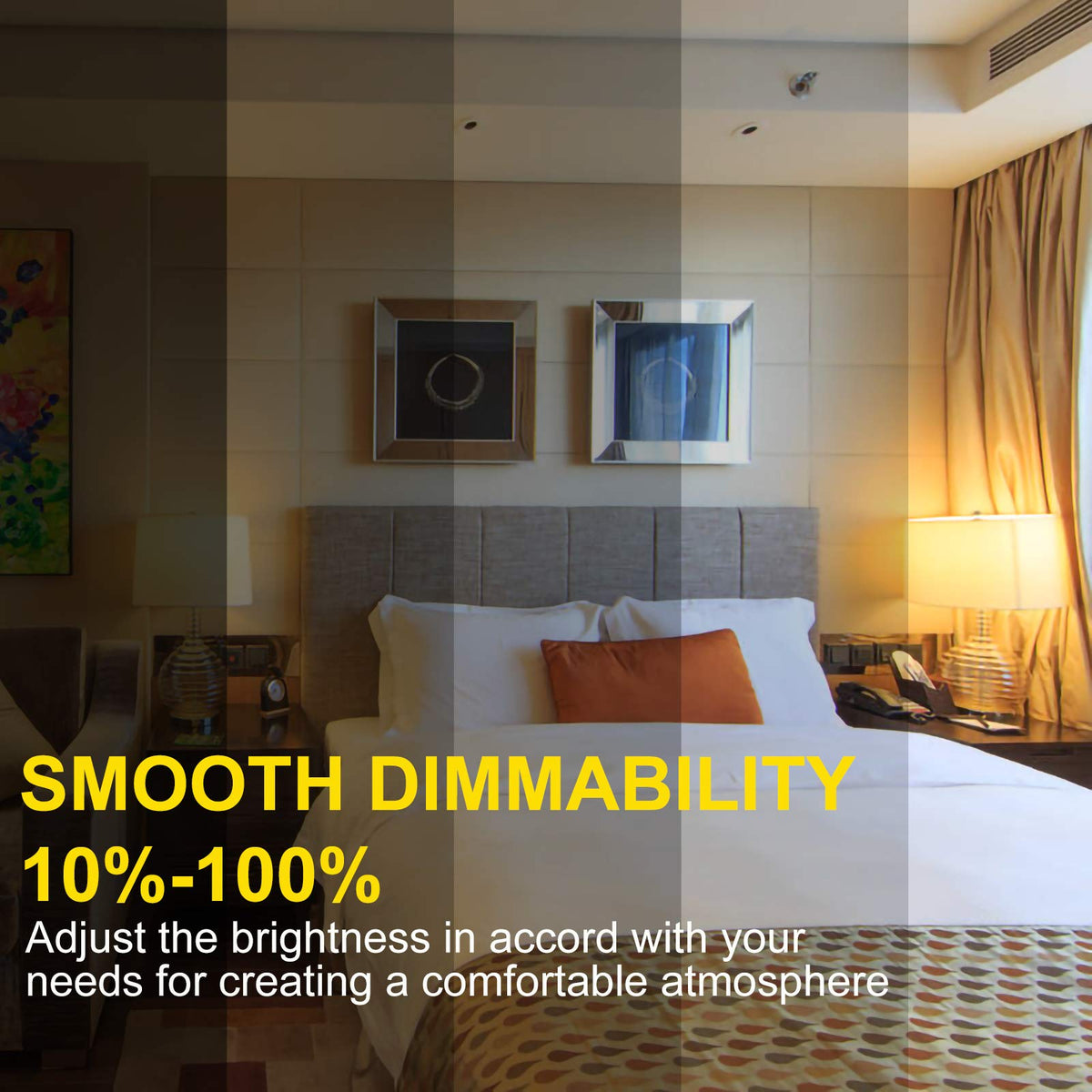 Q: Are these LED bulbs dimmable?A: Yes, these LED bulbs are dimmable and compatible with most LED dimmers, allowing you to adjust brightness levels from 10% to 100% to create the desired ambiance.