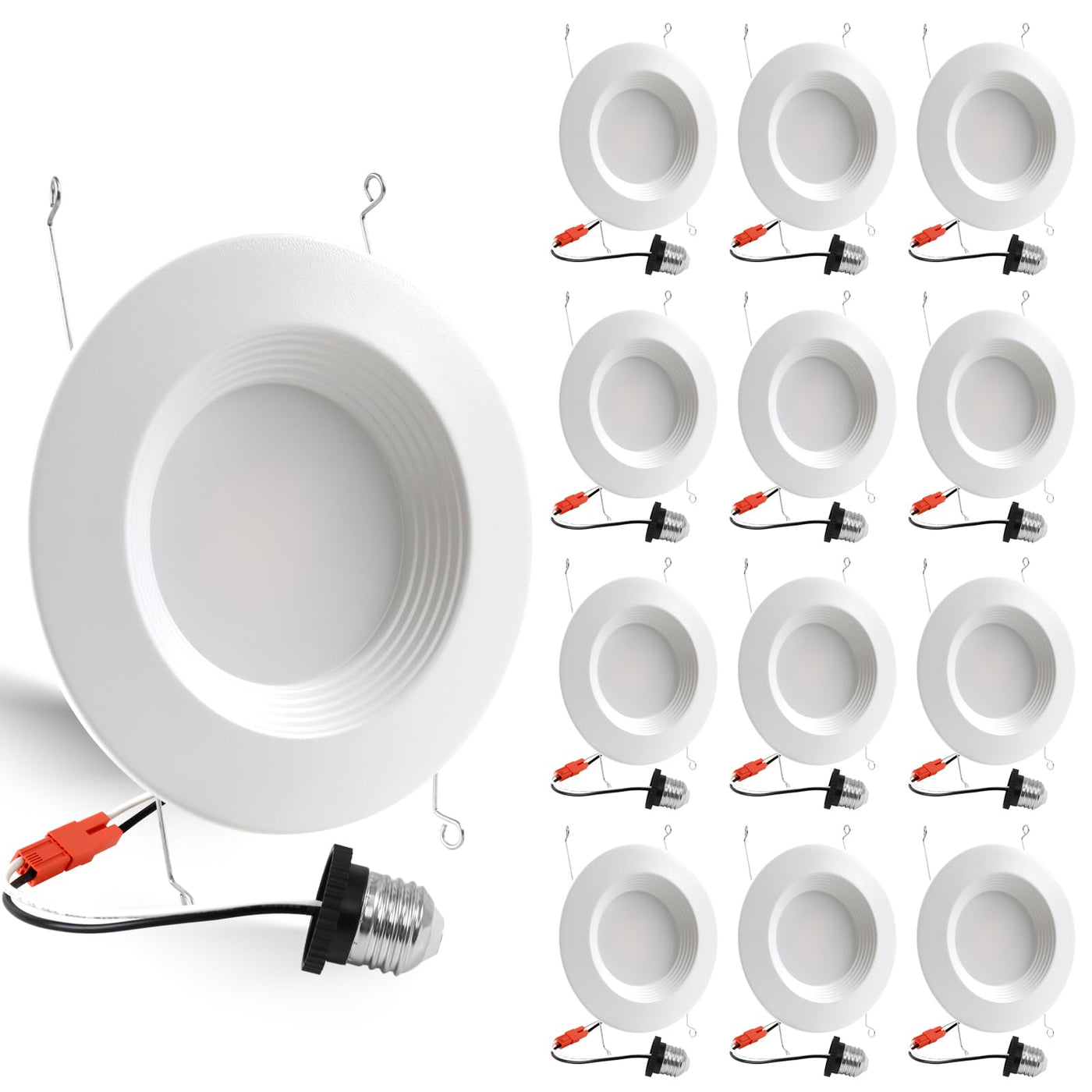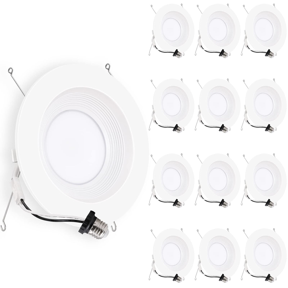 Energetic Led Can Light 5/6 Inch Dimmable, 12W=150W, Daylight 5000K, 1000Lm, Ic Rated & Etl Listed, Led Recessed Lighting Retrofit Downlight, Metal Baffle Trim, Wet Rated, 12 Pack