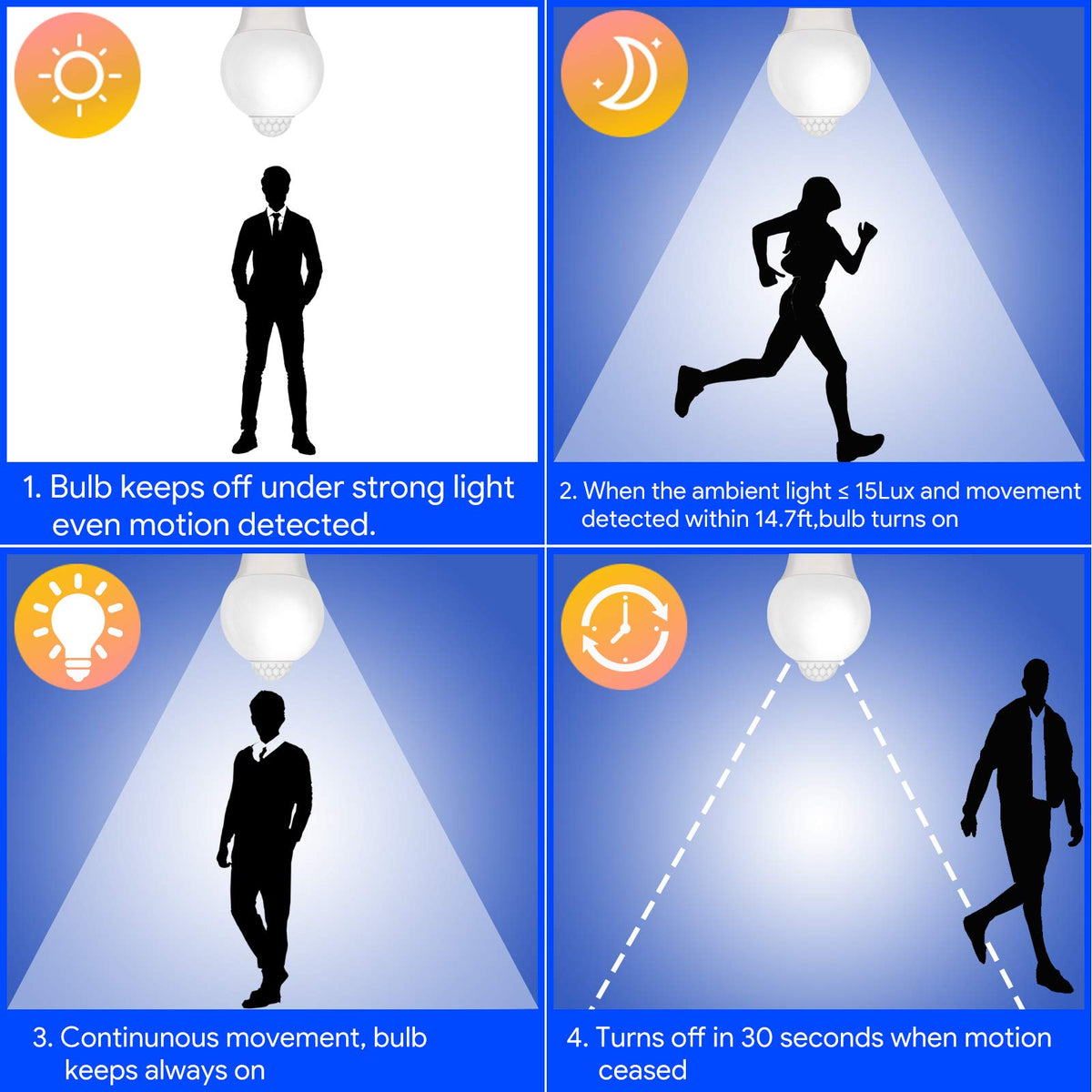 Energetic Motion Sensor Light Bulb, 8.5W (60 Watt Equivalent) E26 Motion Activated Dusk To Dawn Security Light Bulb For Front Do