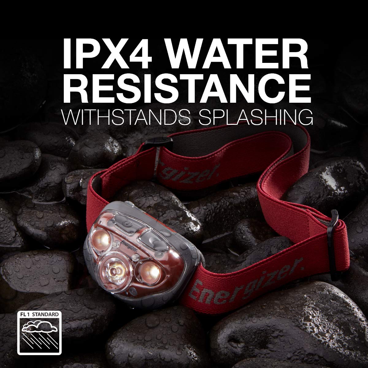 Q: Is the headlamp water-resistant?A: Yes, the Energizer LED Headlamp features a water-resistant IPX4 rated body, ensuring it can withstand splashes of water from any direction, making it suitable for use in various weather conditions.