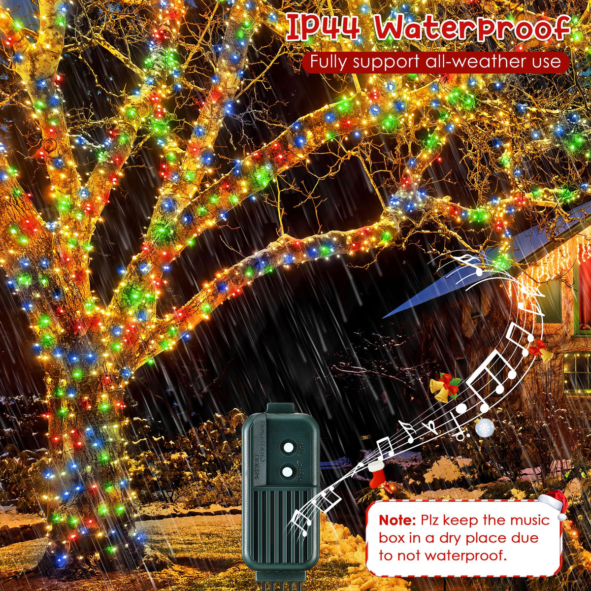 Q: Can these Christmas lights be used outdoors?A: Yes, the Enhon 280 Bulbs Musical Christmas Lights are suitable for both indoor and outdoor decorations. They create a festive atmosphere whether you use them on your Christmas tree, porch, or any other outdoor space.