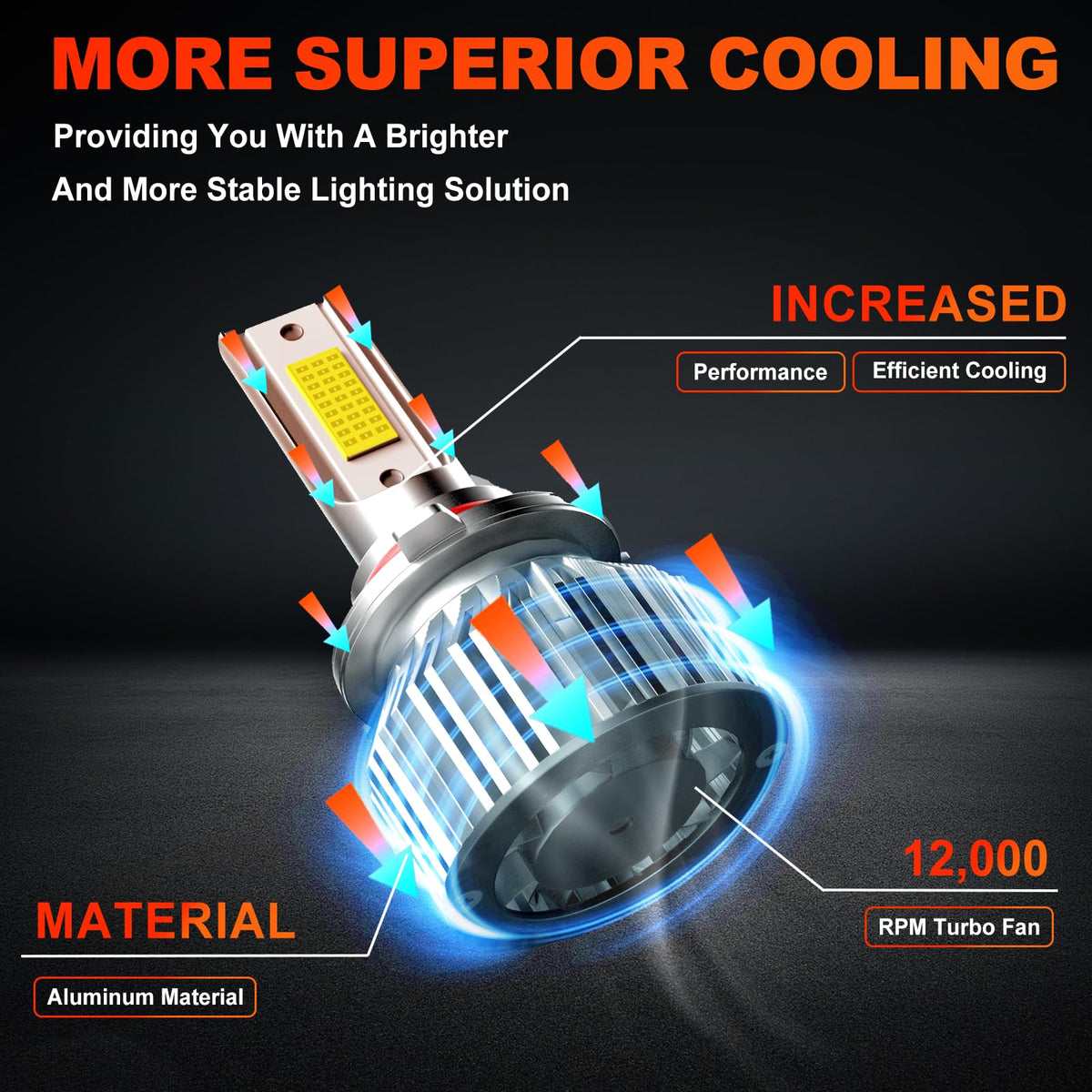Enhanced Safety and Visibility:Drive safer at night. Our bulbs cast a wide, far-reaching beam without blinding oncoming traffic. See every curve and sign clearly, reducing illusions and glare. Experience a safer, more confident drive | Instant Illumination:No warm-up needed. Our bulbs with pure copper heat sinks light up instantly. Save time and improve driving efficiency. Always ready when you are | Durability and Longevity:Built to last. Hollow sculpture aviation aluminum and an efficient heat dissipation system ensure a stable working temperature. Enjoy up to 50,000 hours of reliable light, reducing replacements | Easy Installation:Replace in just 5 minutes. Plug-and-play design makes installation a breeze. Grade waterproof performance ensures durability in any weather, adapting to harsh environments | Superior Light Distribution:600% better visibility. Our bulbs provide a perfect beam pattern for optimal light distribution. Reduce glare and enhance your driving experience. See every detail, every time