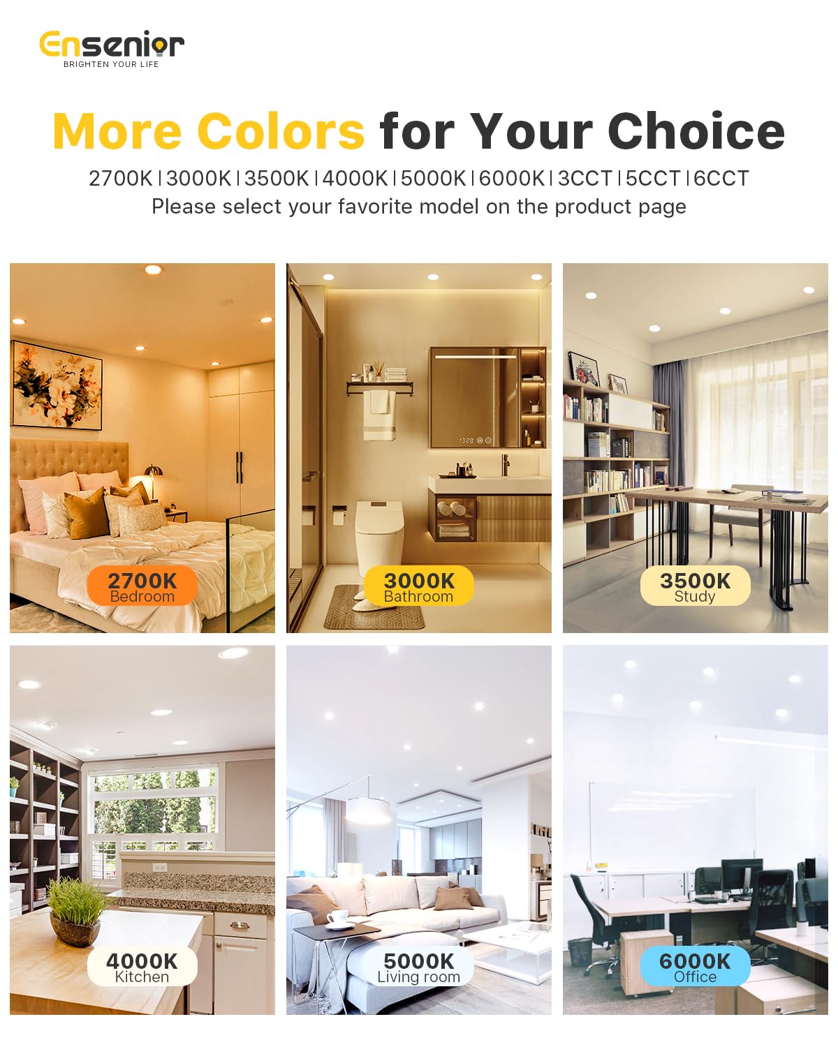 Q: What type of rooms can I use the Ensenior recessed light in?A: The Ensenior recessed light is versatile and can be used in kitchens, family rooms, bedrooms, bathrooms, closets, doorways, and even basements.