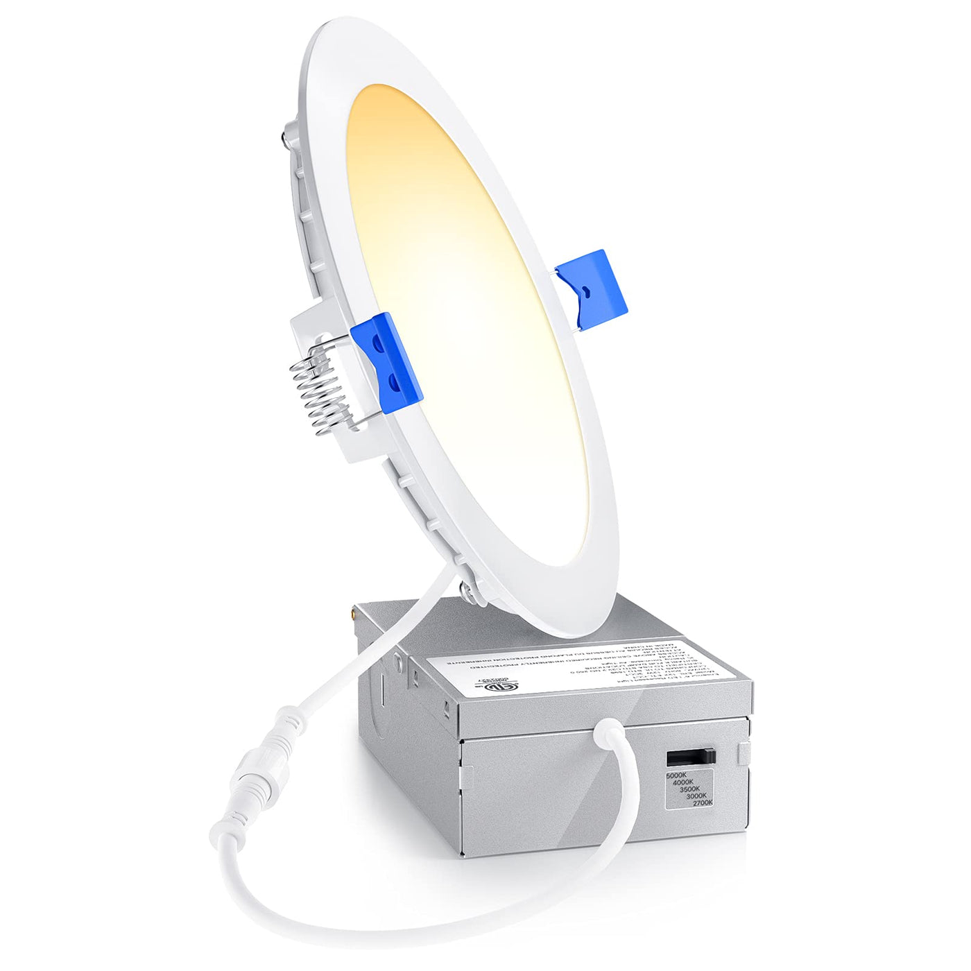 Ensenior 1 Pack 6 Inch Ultra-Thin Led Recessed Ceiling Light With Junction Box, 2700K/3000K/3500K/4000K/5000K Selectable, 12W 110W Eqv, Dimmable, 1050Lm High Brightness - Etl And Energy Star Certified