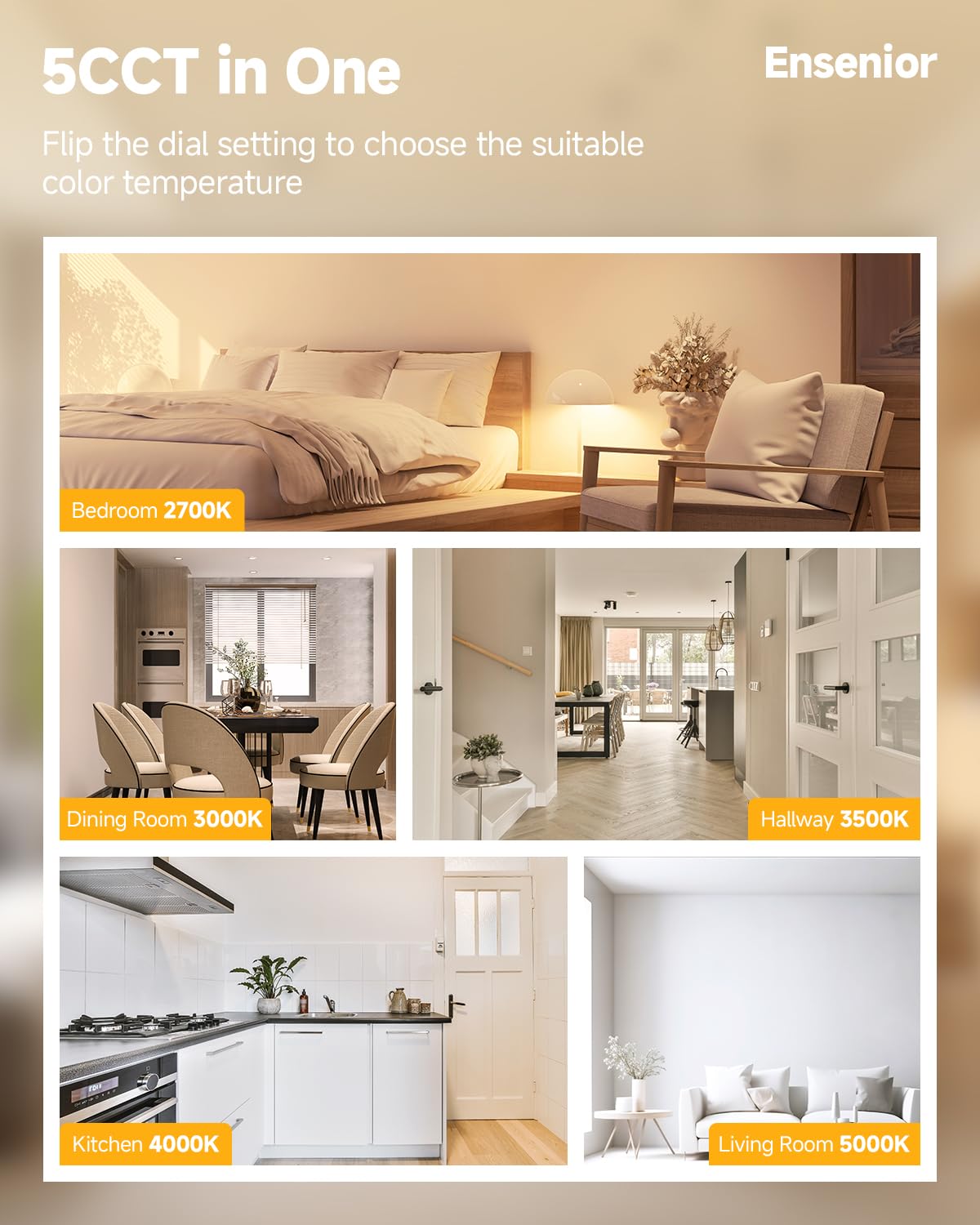 Q: What color temperatures does the Ensenior LED light offer?A: The Ensenior LED gimbal recessed light features five color temperatures, including 2700K, 3000K, 3500K, 4000K, and 5000K, giving you flexibility in lighting design.