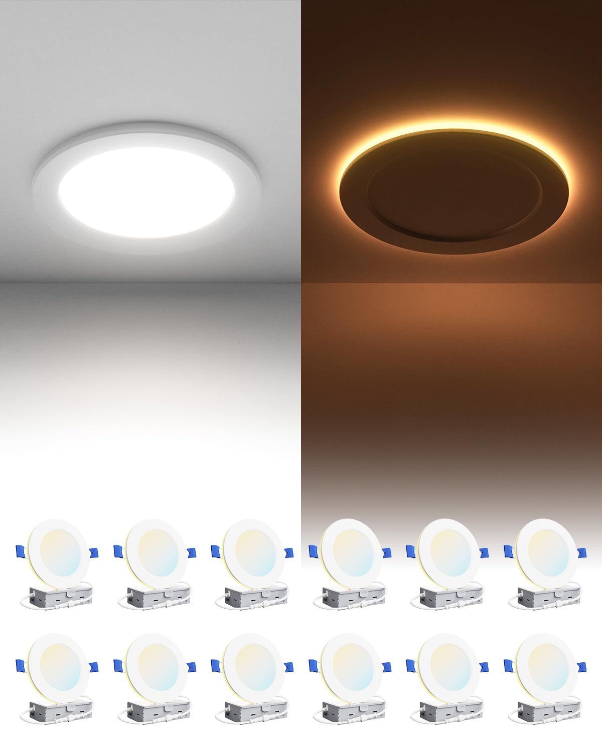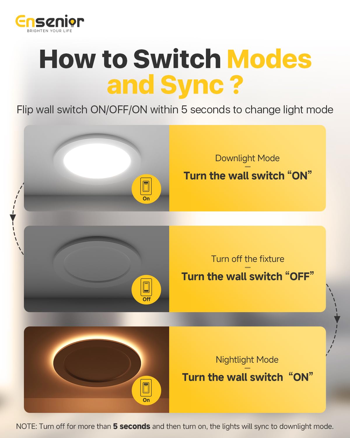 Ensenior 12 Pack 4 Inch Led Recessed Ceiling Light With Night Light, Dimmable, 2700K-5000K 5Cct, 750Lm 9W 120V, High Brightness