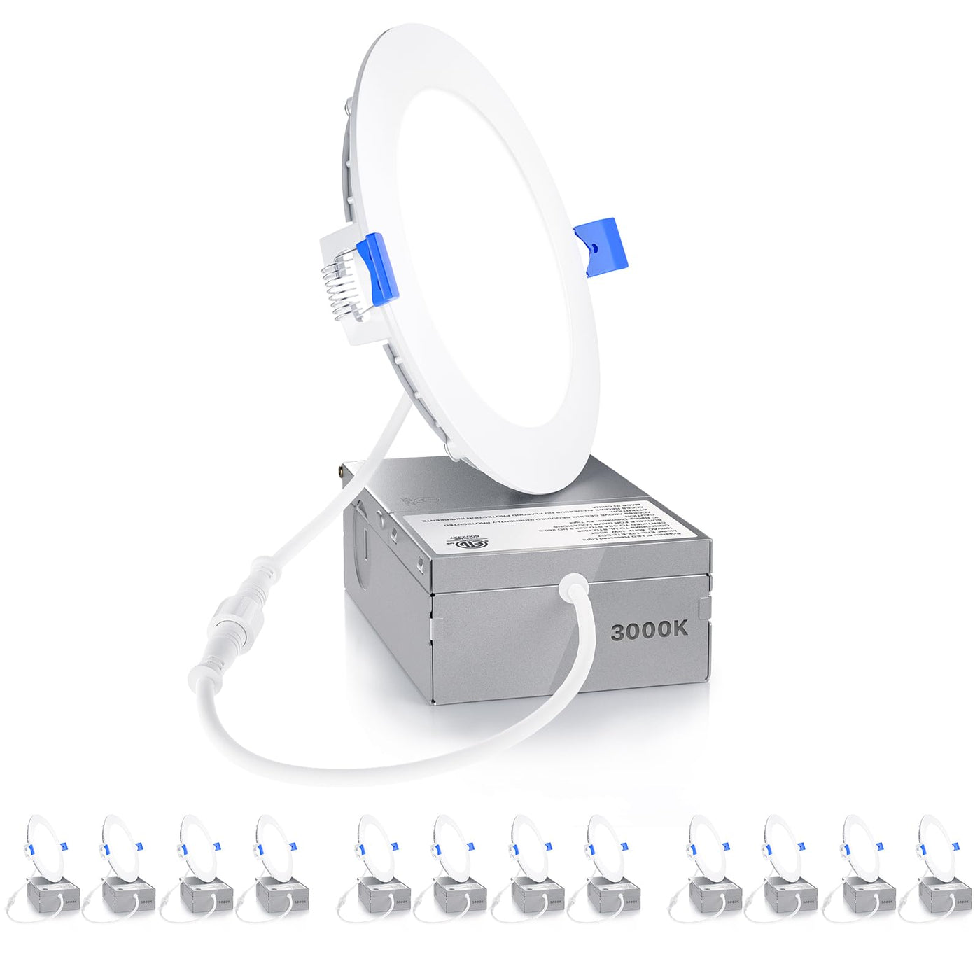Ensenior 12 Pack 4 Inch Ultra-Thin Led Recessed Ceiling Light With Junction Box, 3000K Warm White, 9W 75W Eqv, Dimmable Can-Killer Downlight, 750Lm High Brightness - Etl And Energy Star Certified