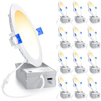 Ensenior 12 Pack 6 Inch Ultra-Thin Led Recessed Light With Junction Box, 2700K/3000K/3500K/4000K/5000K Selectable, 12W 110W Eqv,