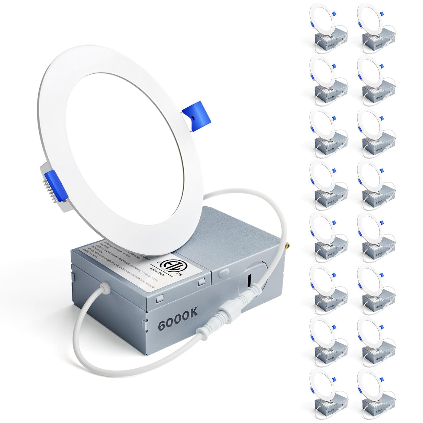 Ensenior 16 Pack 4 Inch Led Recessed Ceiling Light, Dimmable, 6000K Clear White, 750Lm 9W 120V, High Brightness Canless Wafer Do