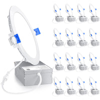 Ensenior 16 Pack 6 Inch Ultra-Thin Led Recessed Ceiling Light With Junction Box, 6000K Clear White, 12W 110W Eqv, Dimmable Can-K
