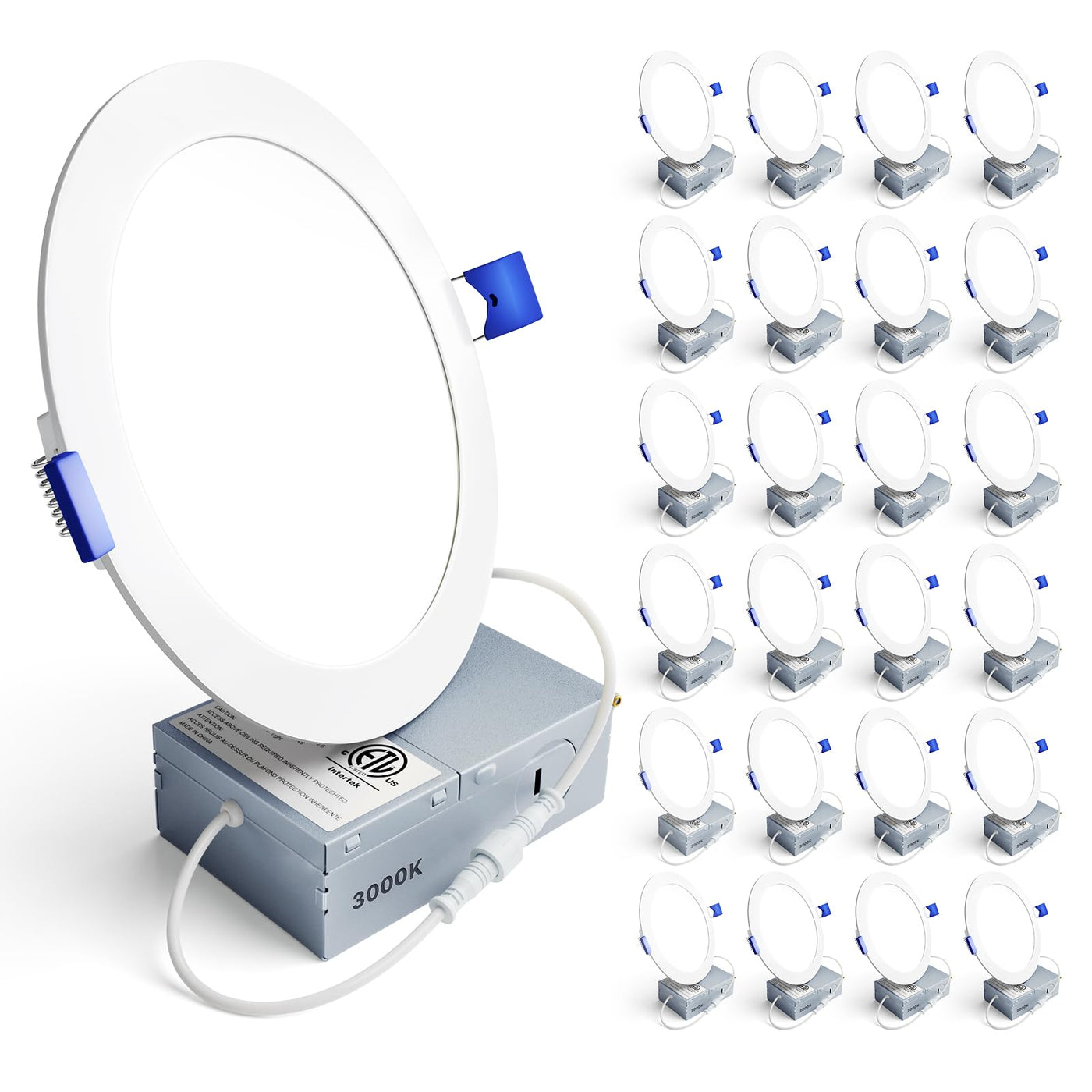 Ensenior 24 Pack 6 Inch Led Recessed Ceiling Light, Dimmable, 3000K Warm White, 1200Lm 12W 120V, High Brightness Canless Wafer D