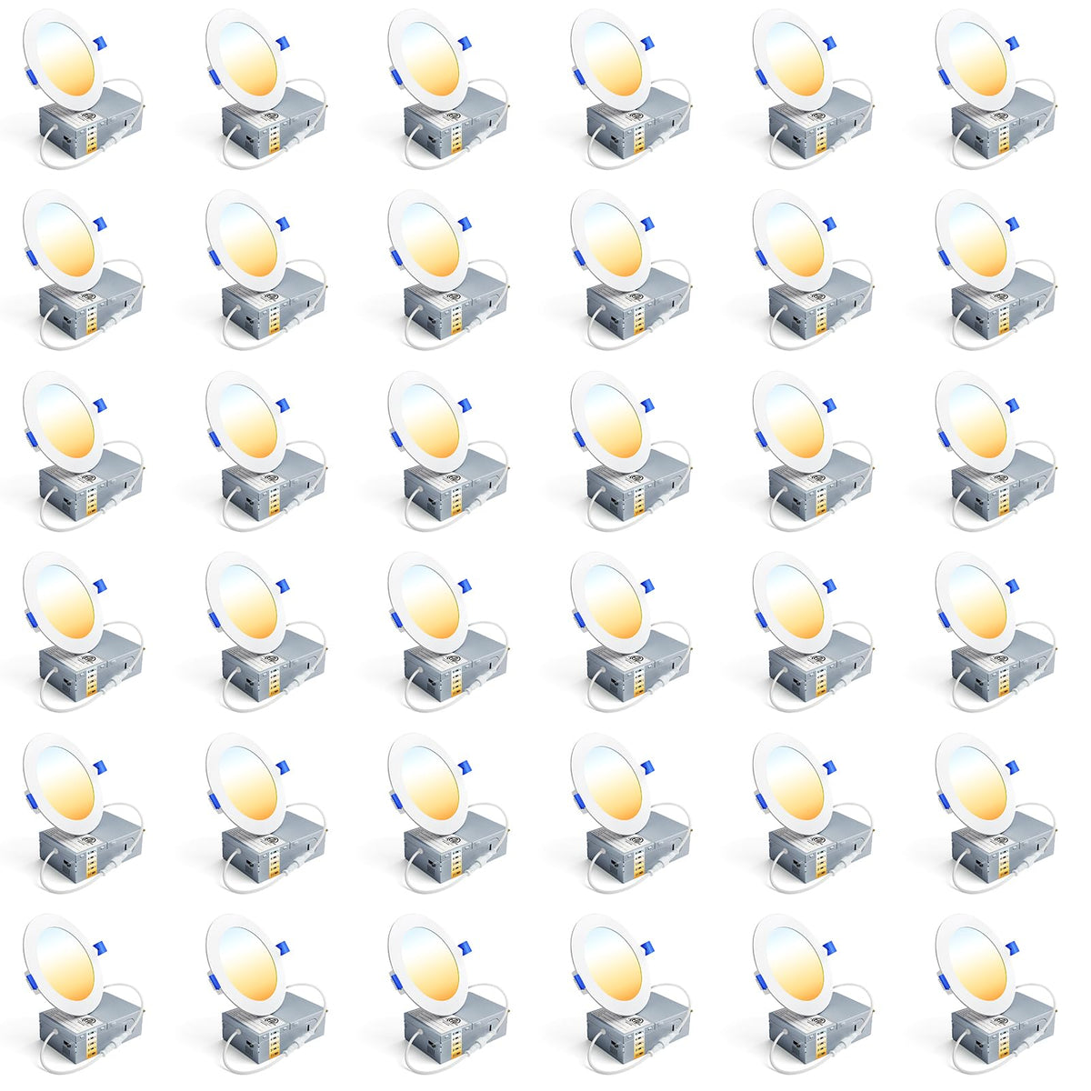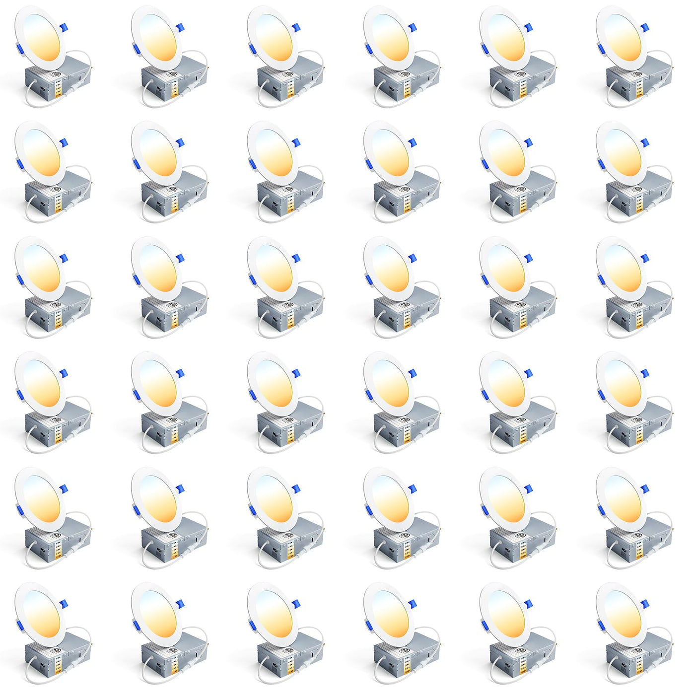 Ensenior 36 Pack 4 Inch Led Recessed Light, Dimmable, 2700K-5000K 5Cct, 750Lm High Brightness, 9W 120V, Damp Rated, Ultra-Thin C