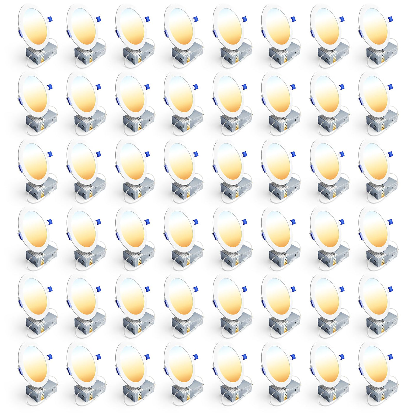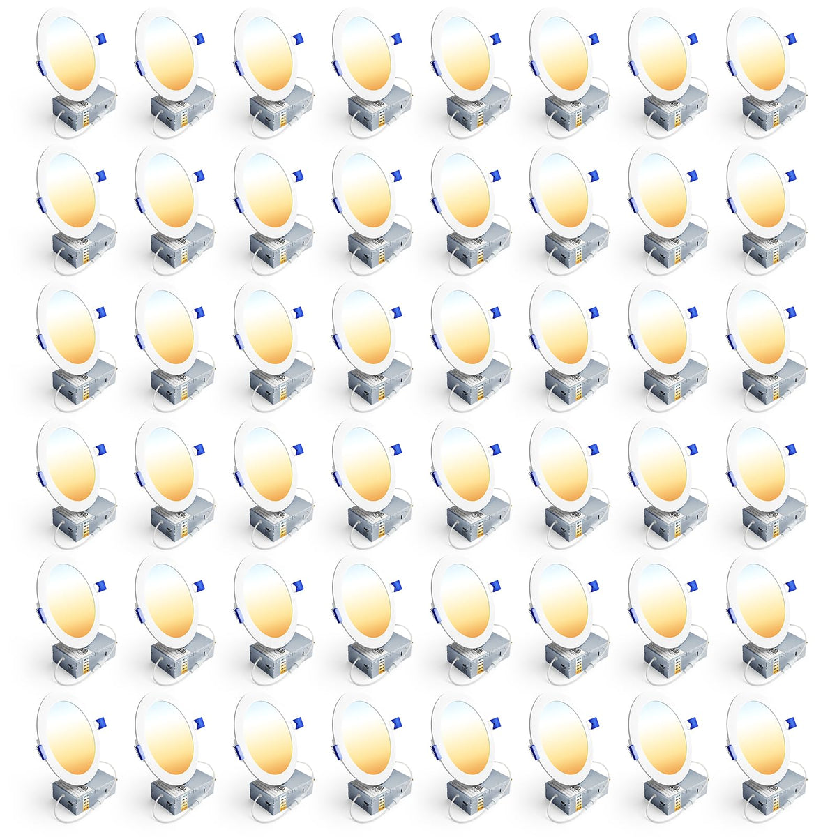 Ensenior 48 Pack 6 Inch Led Recessed Light, Dimmable, 2700K-5000K 5Cct, 1200Lm High Brightness, 12W 120V, Damp Rated, Ultra-Thin