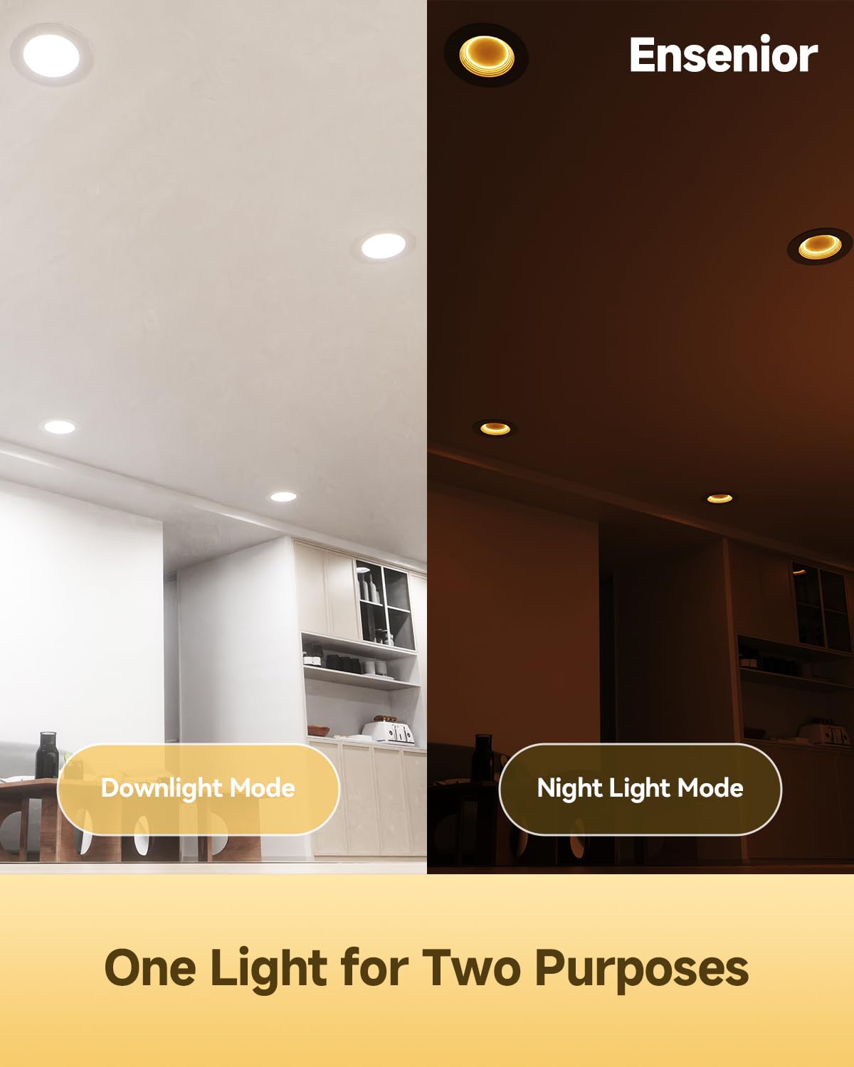 Q: Can I adjust the brightness of the Ensenior LED Can Lights?A: Yes, the Ensenior LED Can Lights allow for easy brightness adjustment with smooth dimming from 5% to 100%. This feature enables you to customize the lighting ambiance for both the night light and downlight modes to your preference.