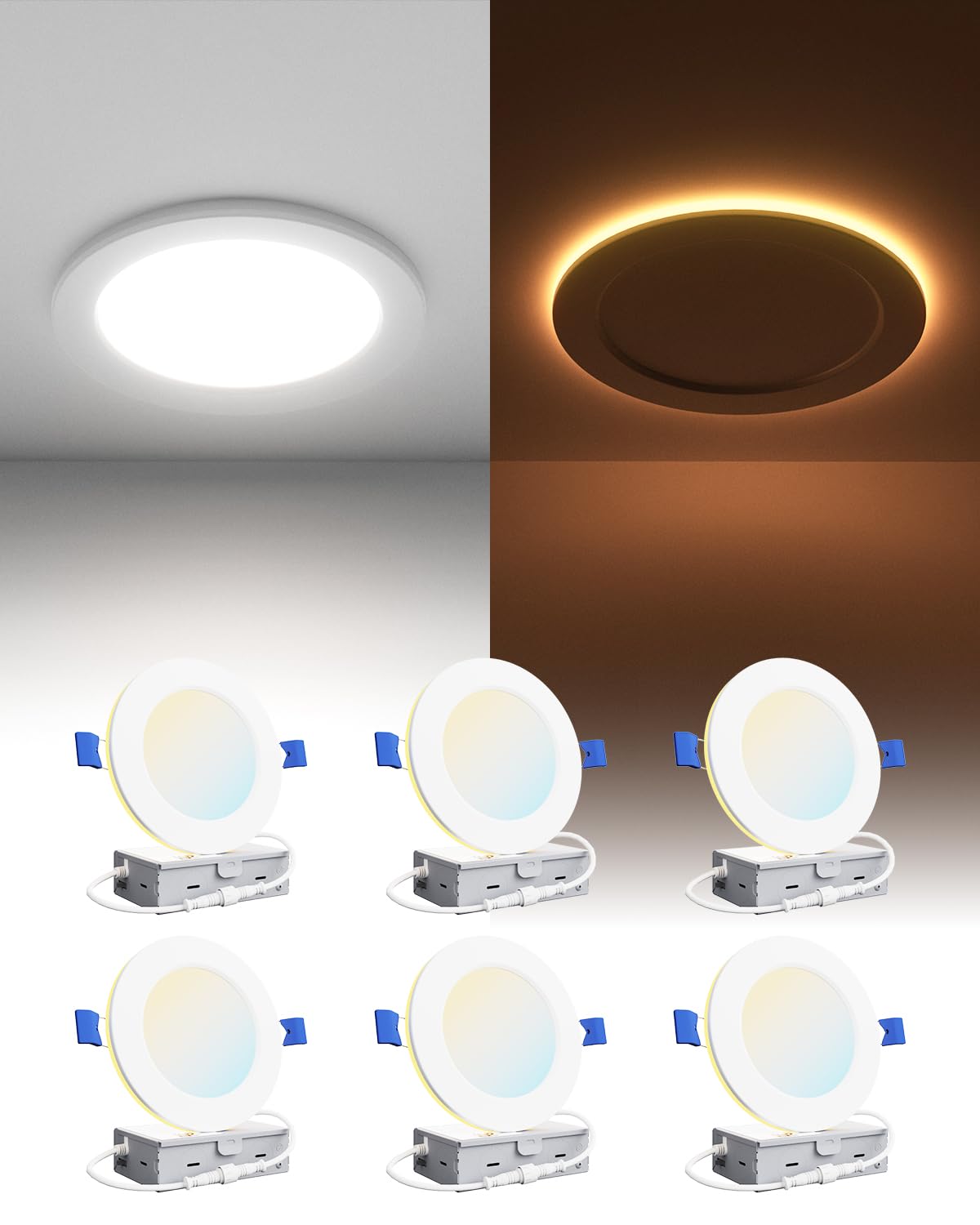 Ensenior 6 Pack 4 Inch Led Recessed Ceiling Light With Night Light, Dimmable, 2700K-5000K 5Cct, 750Lm 9W 120V, High Brightness C