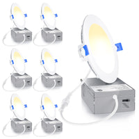 Ensenior 6 Pack 4 Inch Led Recessed Light, Dimmable, 2700K-5000K 5Cct, 750Lm High Brightness, 9W 120V, Damp Rated, Ultra-Thin Ca
