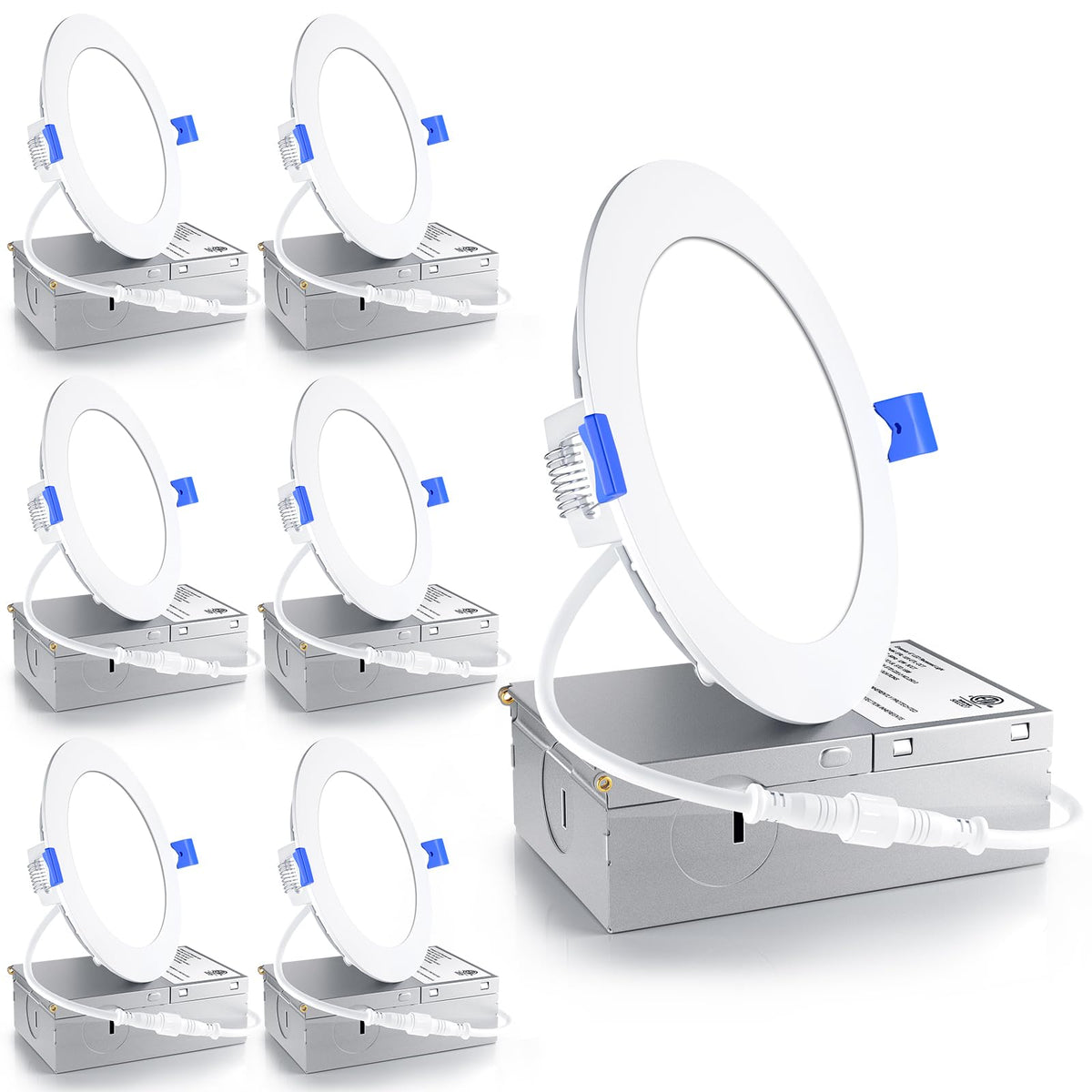 Ensenior 6 Pack 4 Inch Led Recessed Light, Dimmable, 3000K Warm White, 750Lm High Brightness, 9W 120V, Damp Rated, Ultra-Thin Ca