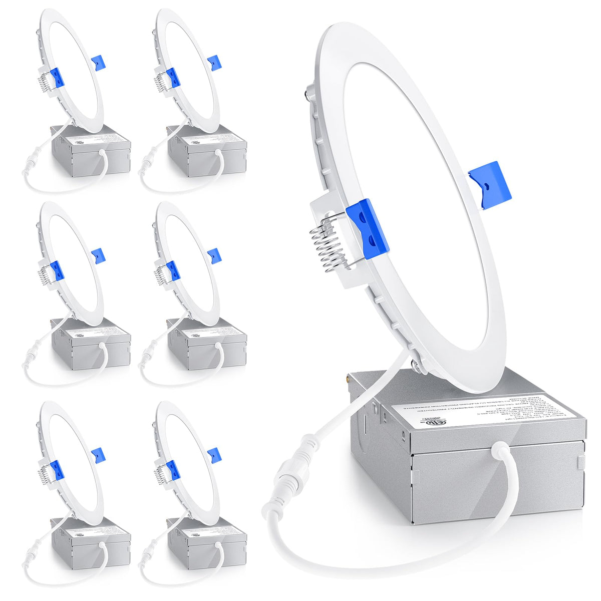 Ensenior 6 Pack 6 Inch Led Recessed Light, Dimmable, 6000K Clear White, 1200Lm High Brightness, 12W 120V, Damp Rated, Ultra-Thin