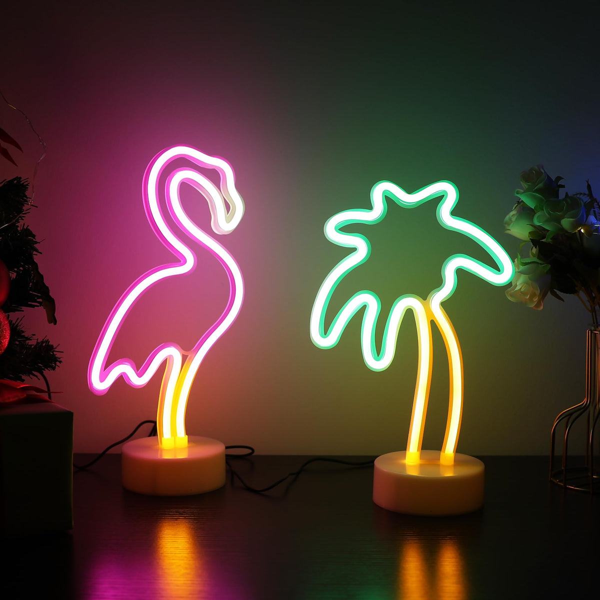 Enuoli Led Flamingo And Coconut Palm Tree Neon Signs Led Battery/Usb Powered Neon Light With Holder Base Decoration Neon Light F