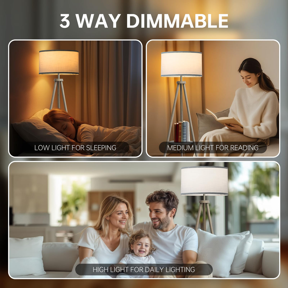 Floor Lamp With 3 Light Modes Adjustable- Wood Tripod Floor Lamp Modern Led Standing Lamp With Dimmable Brightness