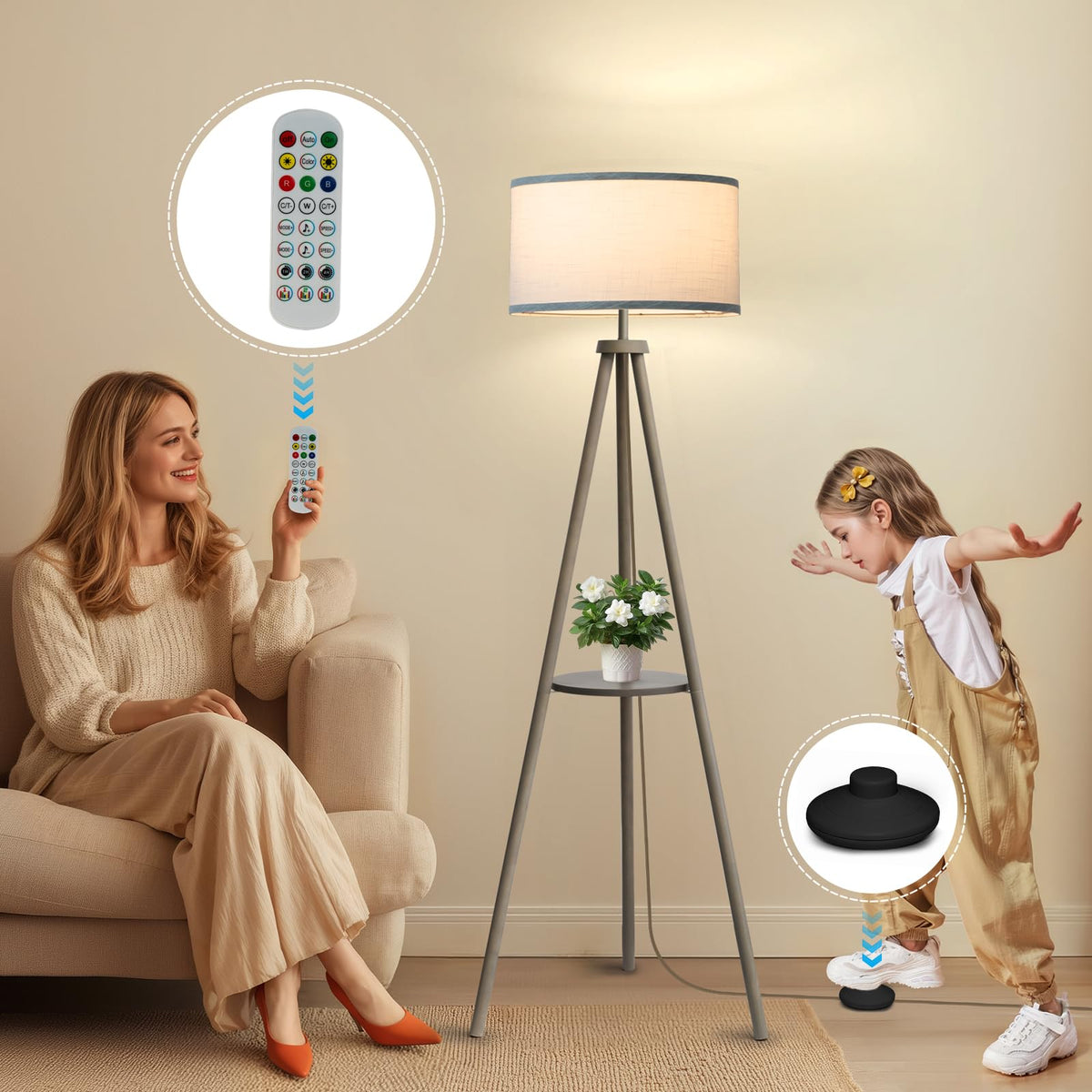 Q: How does the foot switch and remote control work?A: This floor lamp offers both a foot switch and a remote control for convenient operation. The foot switch is located at the cord of the lamp shade for quick access, while the remote control allows you to select your desired color tone from a distance.