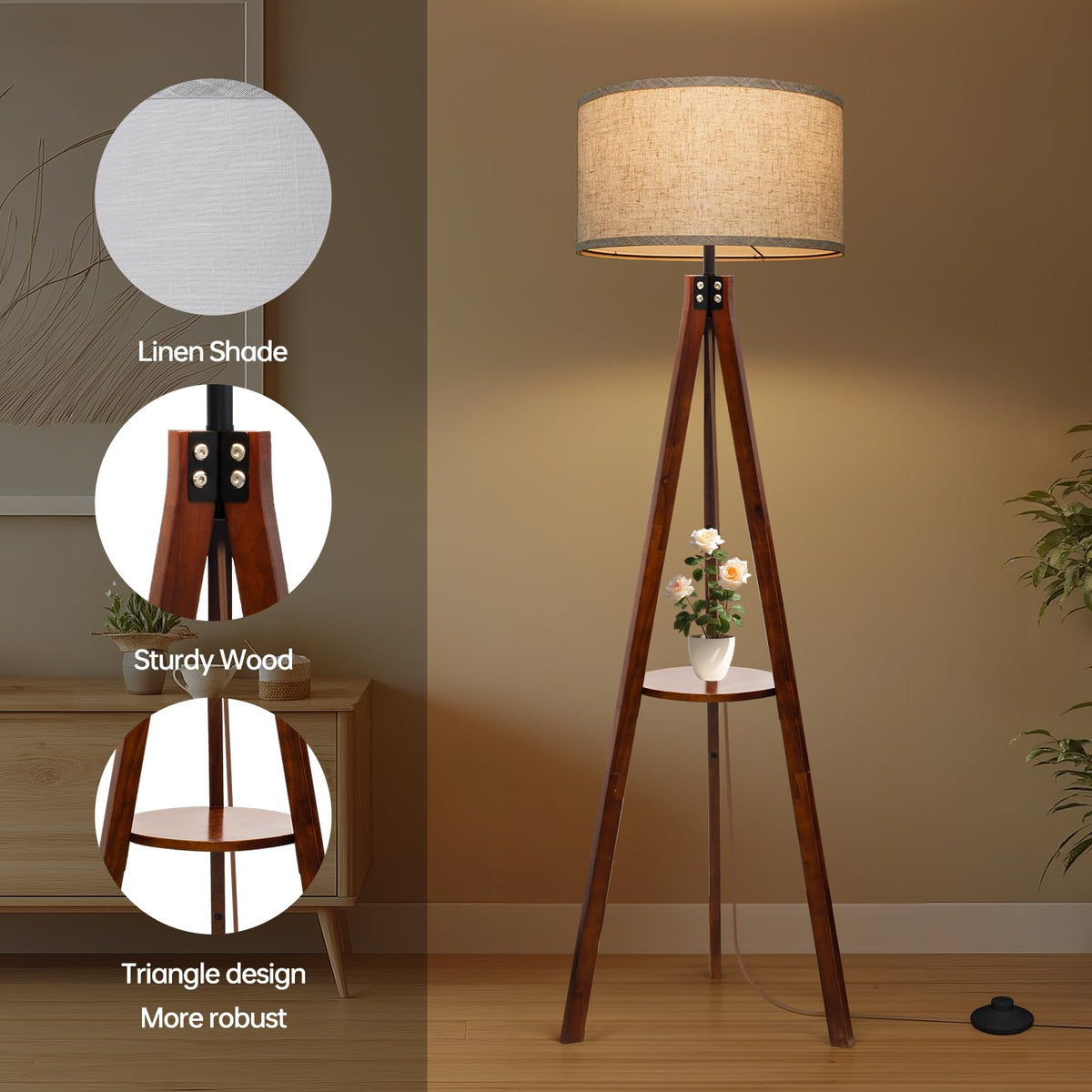 Eoeyyoyb Floor Lamps With Shelf, Modern Standing Lamp With 3 Color Temperature Led Bulb, Tall Lamps With Foot Switch For Living