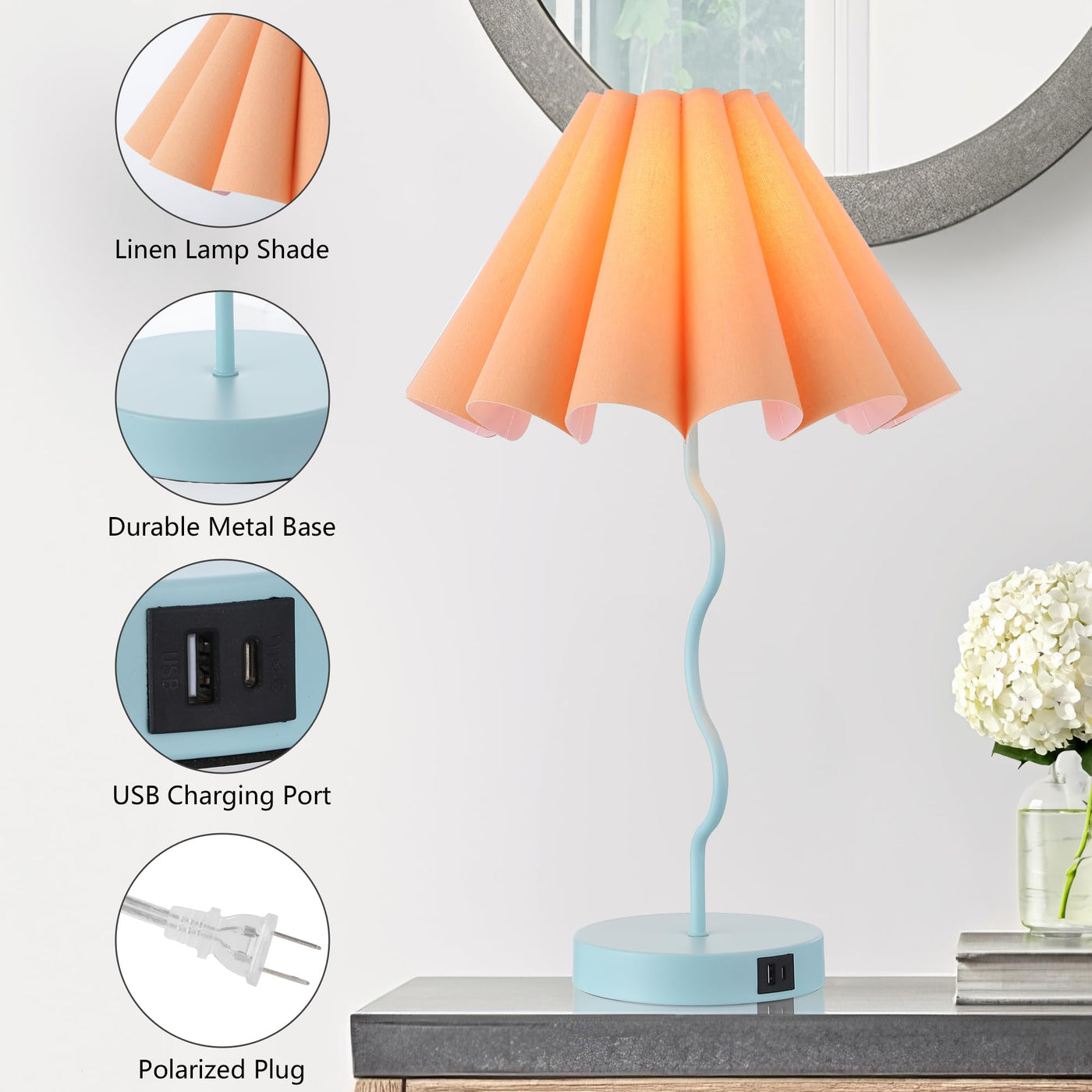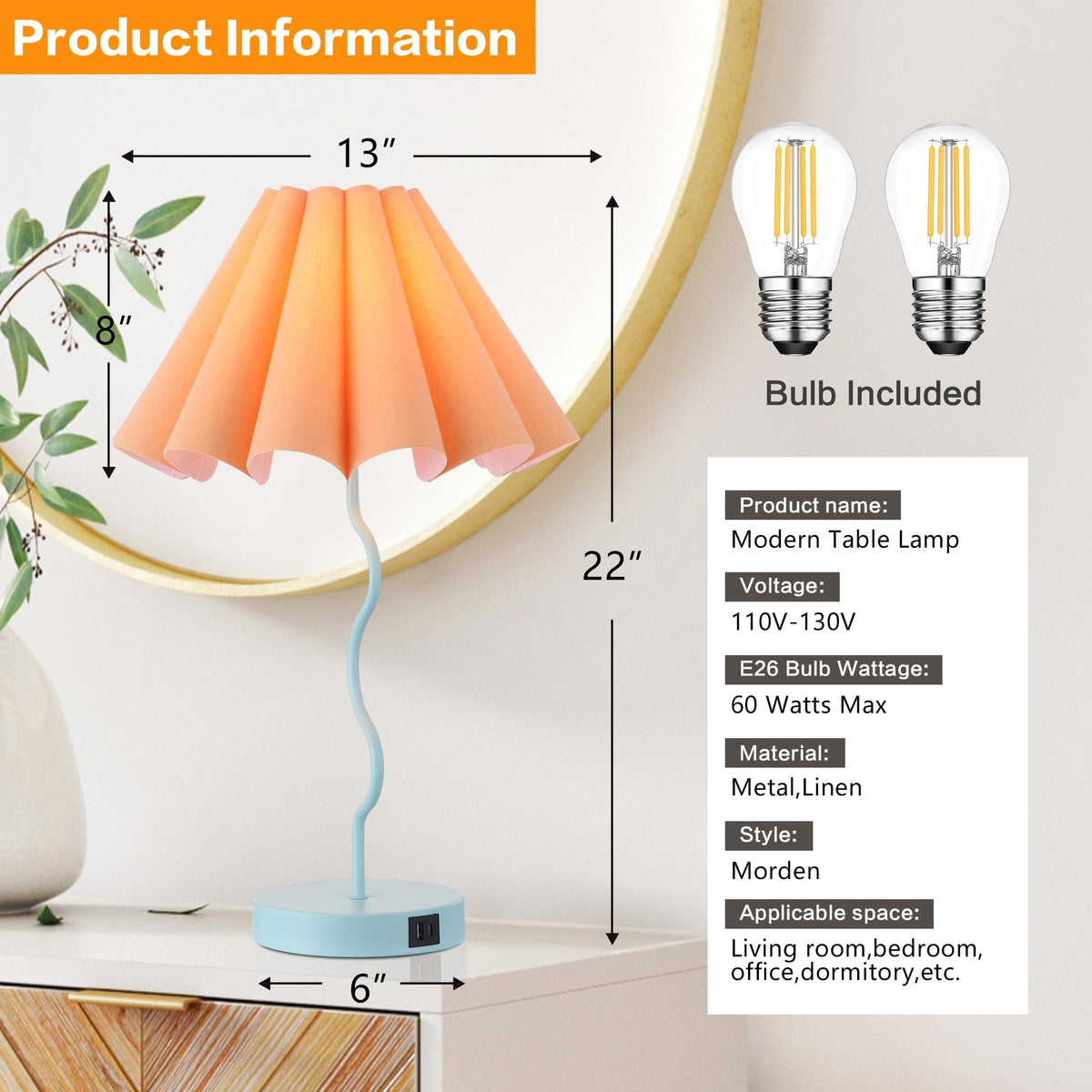 Eoeyyoyb Modern Table Lamp For Bedroom Nightstand Touch Lamps Set Of 2 Orange Blue Lamps For Living Room End Table Dimmable Table Lamp With Usb Port And Outlet